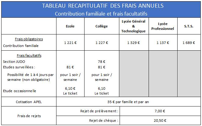 Voici un récapitulatif des frais annuels